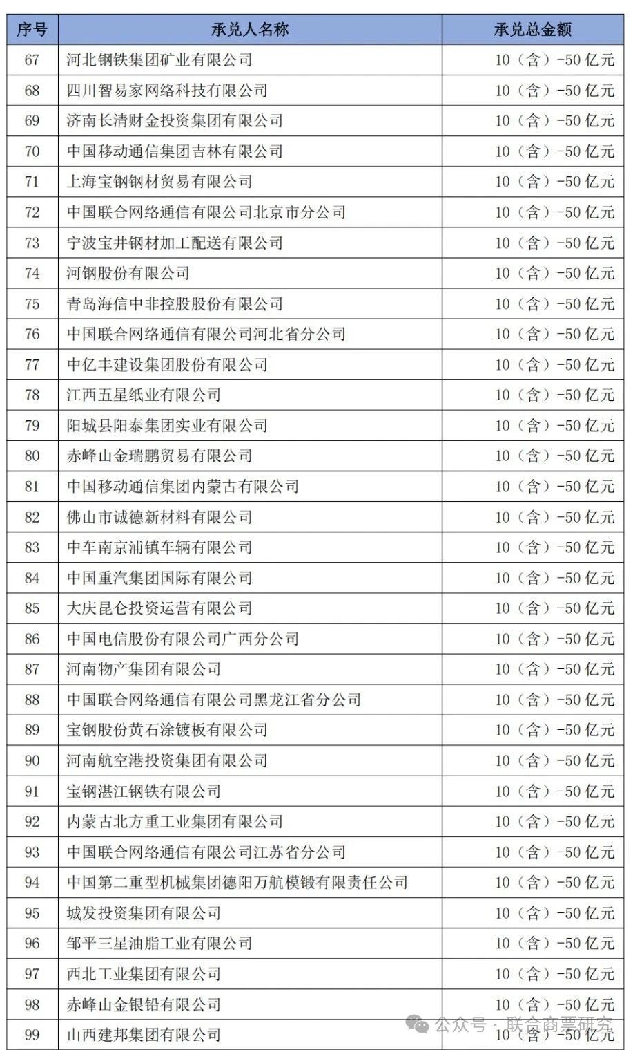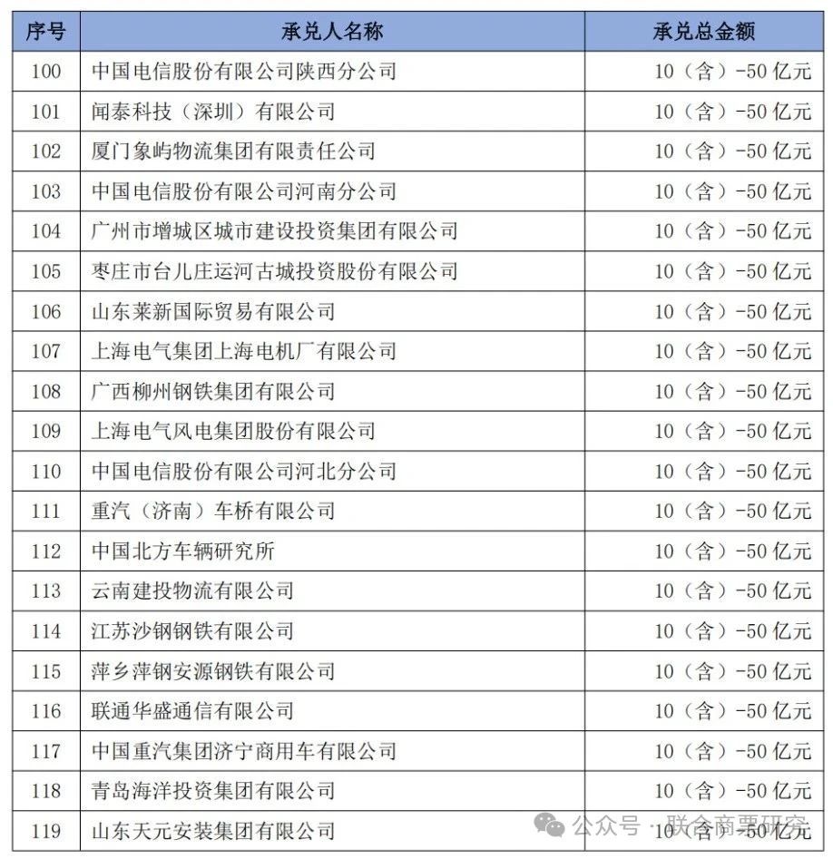 以下119家商票承兌人目前在市場(chǎng)上有較大占比和市場(chǎng)影響力,相關(guān)商票貼現(xiàn)機(jī)構(gòu)可重點(diǎn)關(guān)注。