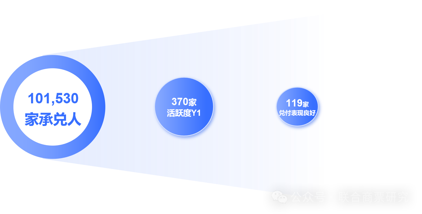 聯(lián)合評(píng)價(jià)從101,530家承兌人中,基于其2024年7月至2025年6月期間的交易活躍度表現(xiàn),篩選出370家交易活躍度指數(shù)為Y1的承兌人,通過對(duì)該370家承兌人兌付表現(xiàn)的篩選,得出119家兌付表現(xiàn)良好的機(jī)構(gòu),該119家機(jī)構(gòu)在商票業(yè)務(wù)方面無任何逾期記錄。